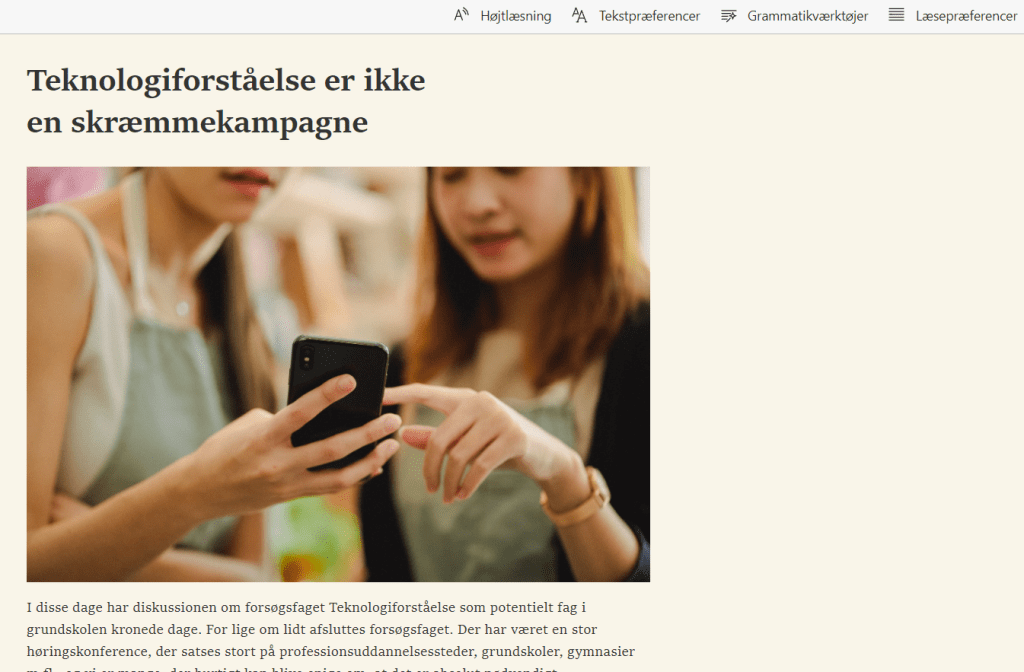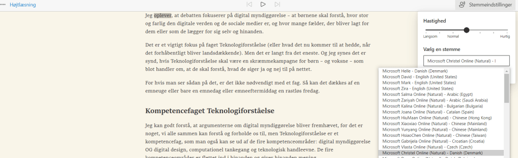 Jeg er især glad for Højtlæsningsfunktionen i Edge. Selvom jeg ikke er ordblind, nyder jeg godt af at få læst teksten højt, især hvis det er tungere stof, fx studie eller dybdegående artikler.